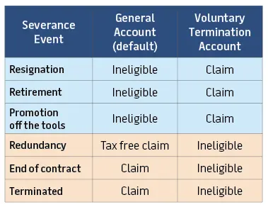 - Claims you cannot make from the General Account fall under the category of ‘voluntary termination’. These include resignation, retirement and promotion off the tools claims
